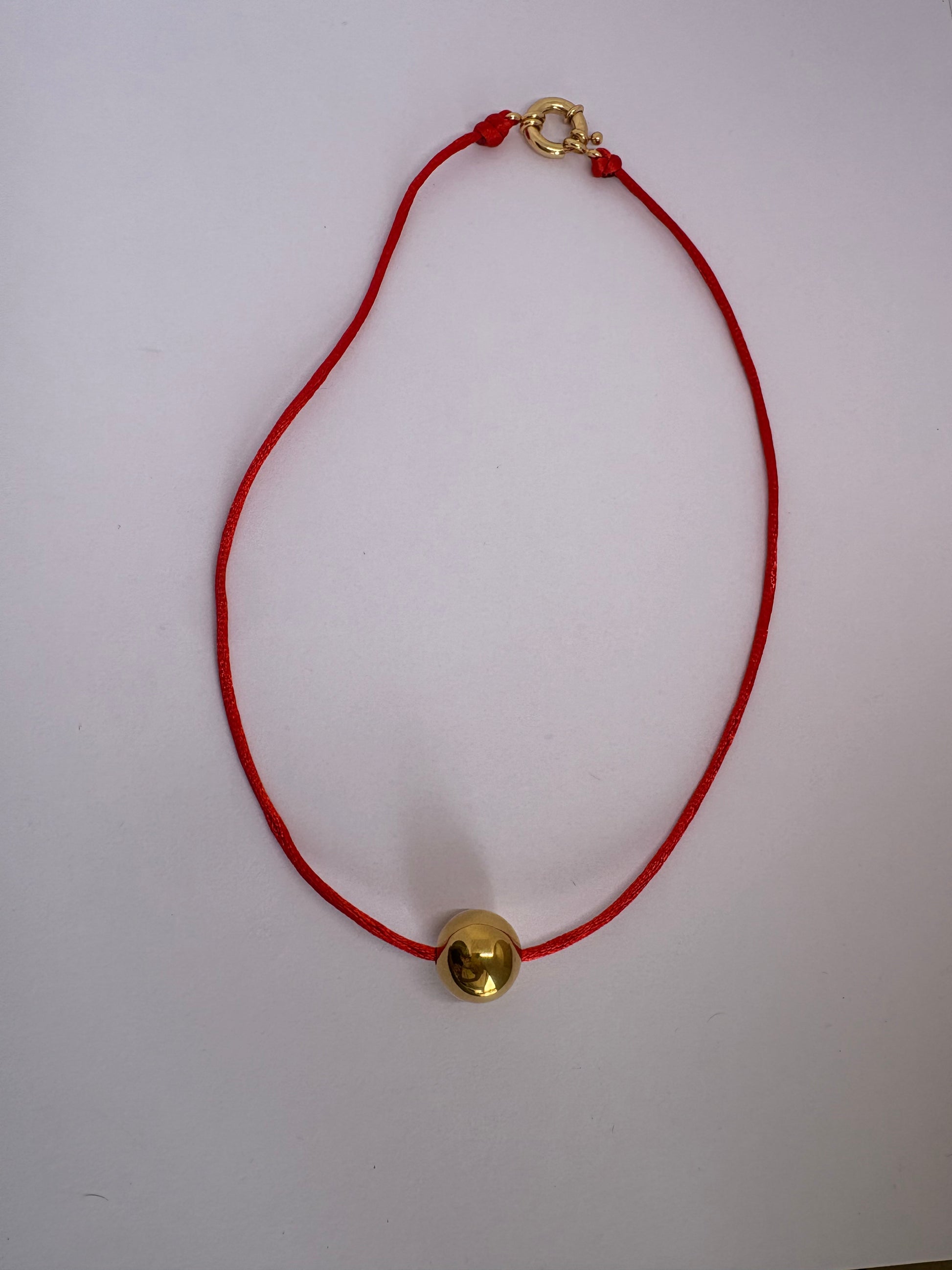 Este collar lleva un cierre marino y esfera; bañadas en oro 18k. Añadimos un corazón como pieza colgante(es removible)