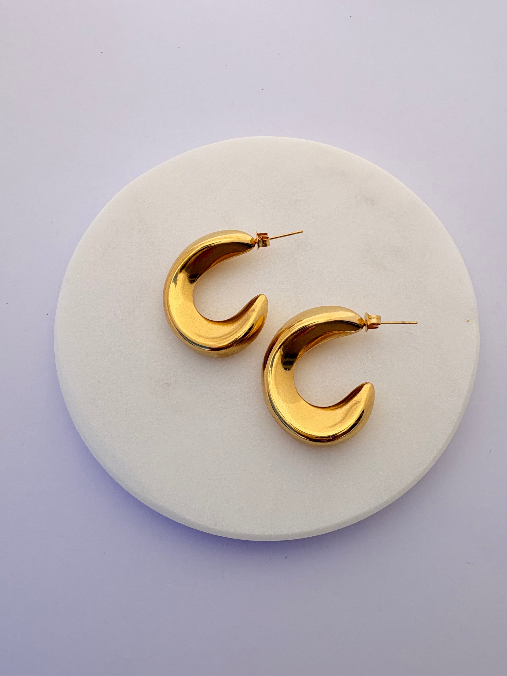 Pantallas Luna, elaboradas en acero inoxidable con baño de oro 18k. Un diseño atemporal y delicado que añade elegancia a tu estilo cotidiano.